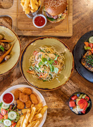 Battered flathead, crumbed prawns, and crumbed calamari served with thick cut chips, tossed salad leaves, and housemade tartare sauce.